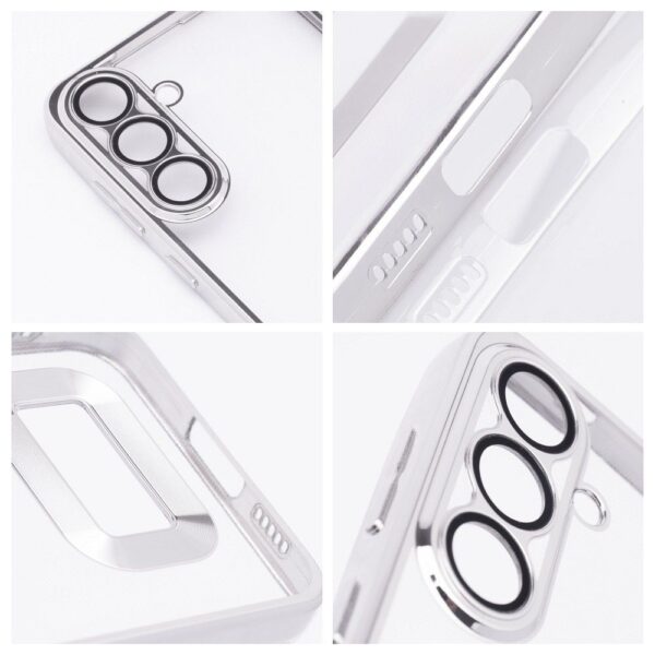 Glam case is a trendy accessory and a guarantee of safety. It is a unique case with decorative edges and an original frame on the back. The case protects not only the screen, but also the camera with lenses – it has a cover for the camera island and additional protection for the lenses.