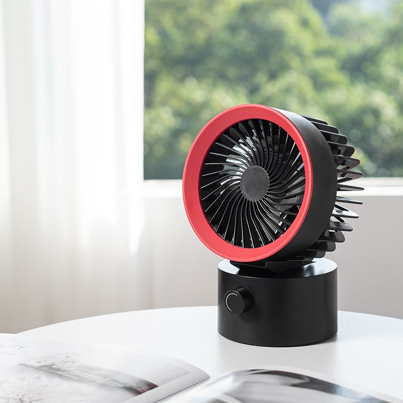The fan, powered by a USB port, does not require charging – it is ideal for the office, at the computer or on the bedside table. Small and light, it is perfect for everyday use and travel.