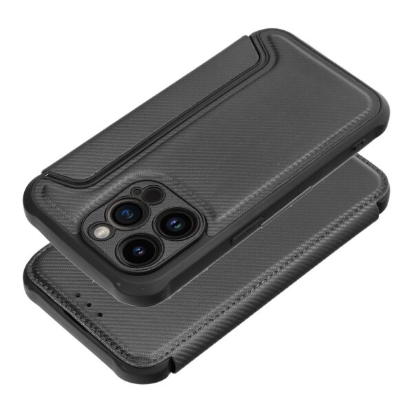 The carbon, dark-colored cover refers to the design of sports cars and gives the device an elegant character. The inner material is so soft that it additionally protects the display against damage, while the honeycomb pattern on a rubber part supporting the phone highlights the aesthetics of the entire case.
