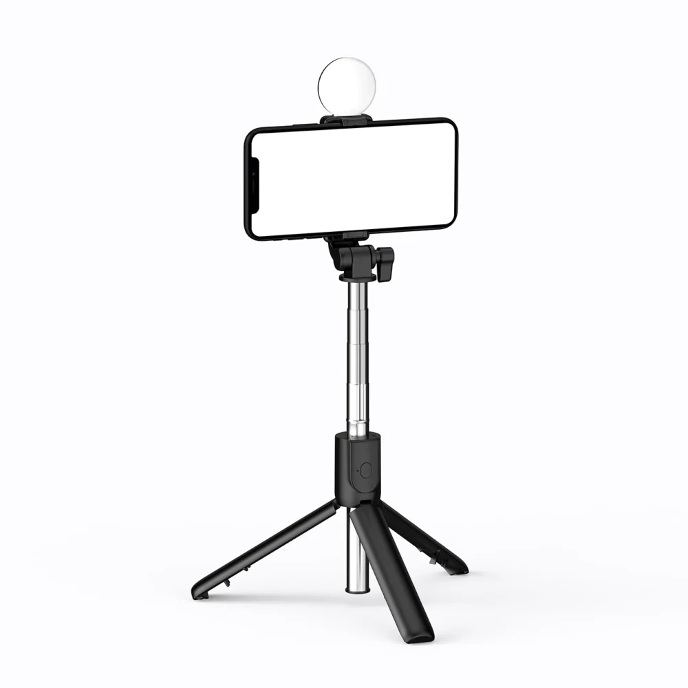 WR1YXS Telescopic Selfie Stick / Tripod up to 71 cm high with round lamp – black